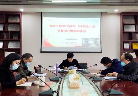 3月31日14时,学院党委中心学习组在鹤鸣楼(北)会议室举行“新时代、新师范、新使命”办学思想大讨论集中学习活动。院党委书记邹华秀主持学习活动。学院党政班子全体成员、各党支部书记、各系主任、各...