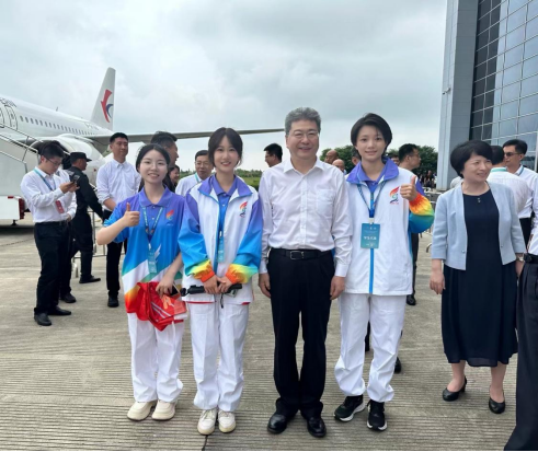 图7 湖南省学生代表黄筱斓、成思怡、夏恺桐(从左至右)合影留念
