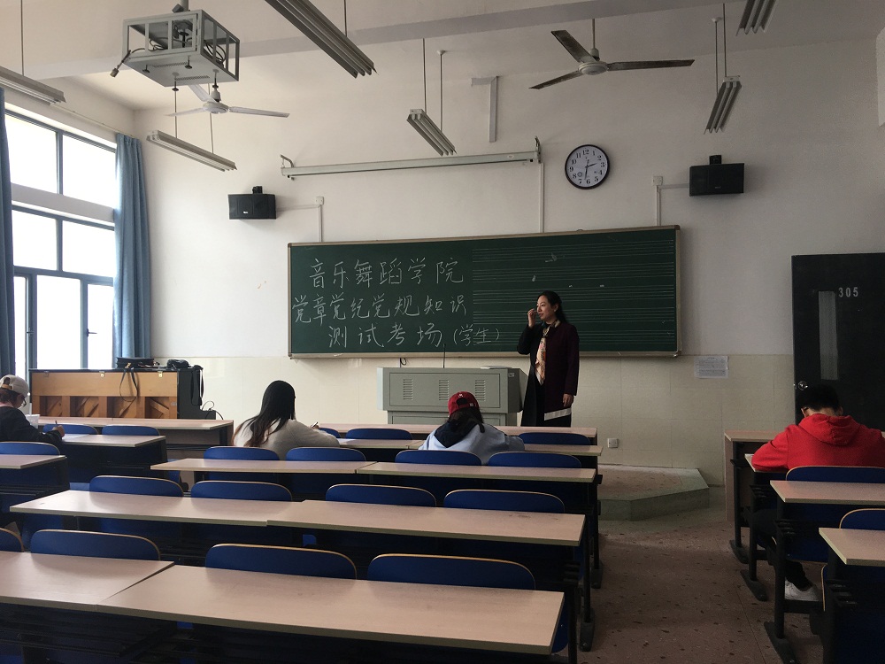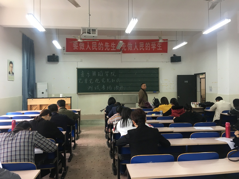 2018年10月16日下午,我院党总支对全体教职工党员和在校的学生党员开展了党纪党规知识测试。测试在鹤鸣楼303和305两个考场进行,22名教职工党员和4名学生党员分别在两个考场参加了测试,党总支书记谭顺来和副书记杨丹担任监考。考场纪律严明,气氛严肃,每位参考党员都认真仔细地按照要求答题和上交答卷。