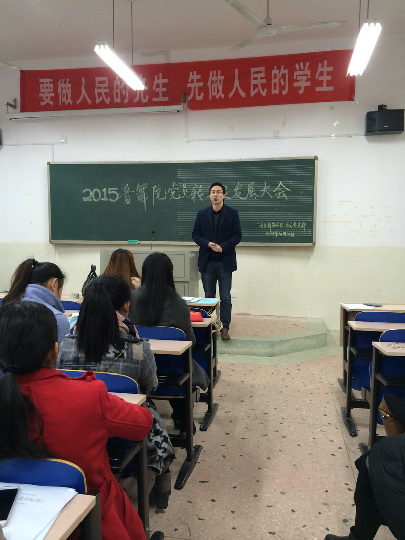 2015年12月13日上午九点整,我院学生党支部党员转正及发展大会在艺术楼303教室举行。学生党支部书记杨乾良老师出席会议。