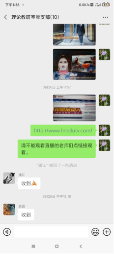 在建党一百周年之际,2021年《就认这个理》活动推出百年一课《恰同学少年》,课堂就设在我们湖南第一师范学院城南校区的礼堂,3月26日上午9点正式开始直播。这个消息让我们一师人感到无比兴奋和自豪。虽然不能在现场观看,理论教研室党支部各位党员通过网络、电视自主观看了直播。