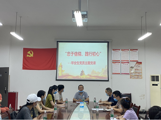 6月11日晚上7点,我院学生党支部在鹤鸣楼五楼党员活动室举办“忠于信仰、践行初心”党课、党员师生座谈会、重温入党誓词,开展毕业生党员最后一次主题党日活动。院总支书记谭顺来、副书记谭小红、学生党支部书记邓志刚、全体毕业生党员参加活动。邓志刚主持活动。