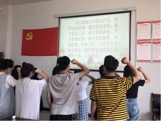 座谈会结束后,全体参会党员面对党旗举起右手,由支部书记邓志刚带领大家以集体宣誓的形式,重温入党誓词。(邓志刚)