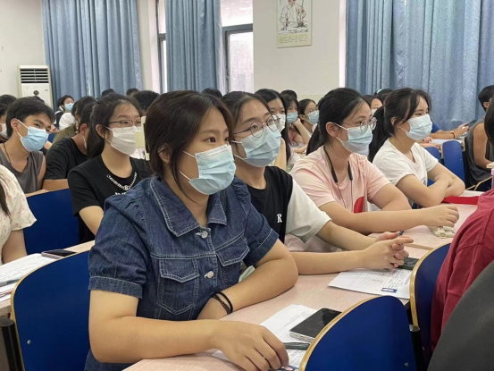 9月4日上午,我院党委书记邹华秀以《传承红色基因,争做时代新人》为主题,面向2022级新生开展校史校情教育。为有效防控疫情,我院新生入学教育全程设曼仑音乐厅和鹤鸣楼303教室两个分会场,严格执行戴口罩等相关防疫措施。院党委副书记谭小红、学工办主任邓志刚、院团委书记杨淇雅、实验室主任朱勇、新生辅导员何忠华分别参与主持与活动组织工作。2022级全体新生分别在曼仑音乐厅和鹤鸣楼303教室通过线上、线下两种方式聆听讲座。