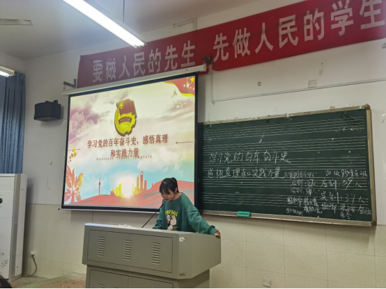 团课学习由各班组委宣布开始。团课伊始,全体团员起立,奏唱团歌。团课中组委展示PPT并向团员们介绍了党的艰难发展和光辉奋斗的历史,播放了讲述党的发展历程以及介绍优秀共产党员事迹的相关视频,并在视频间隙加入了事件更详细的背景介绍,团员们更加深刻地体会到共产党发展的曲折艰辛与先辈们的奋斗精神。与此同时,各班组委还开展了党的发展知识竞答、时政焦点等丰富课堂学习内容的互动环节,每一个环节中,团员们都踊跃发言,积极参与,课堂气氛十分活跃。