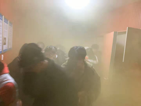 讲座过后的消防逃生演练,让学生们有机会现学现用讲座所讲的知识,身临其境的体验让学生们对消防安全有了更深的感悟。