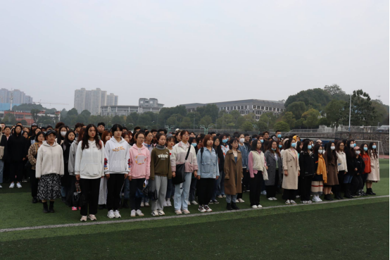 11月2日7时,我院在田径场举行升旗仪式,院党总支谭小红副书记、学工办全体辅导员、以及19、20级全体学生参加,仪式由学工办主任邓志刚老师主持。