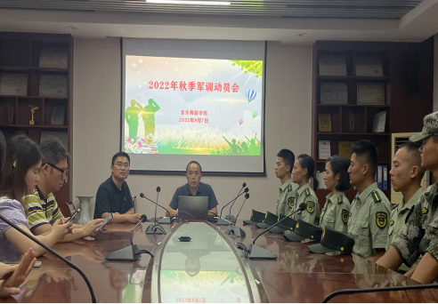当晚7点,在院会议室院党委副书记谭小红、学工办主任邓志刚、院团委书记杨淇雅、新生辅导员何忠华、全体新生带班干部一同与六位教官会面,举行简短而又庄严的军训动员会。学工办主任邓志刚主持会议。