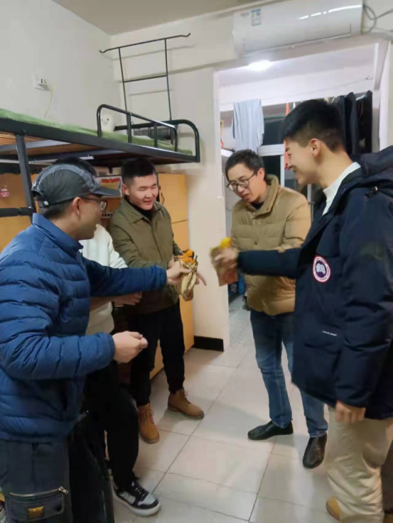 2021年12月15日晚上8点40,我院党政办主任杨乾良与辅导员曾亚斌一起到我院的“军人之家”13栋333寝室进行了一场朋友般的“学风建设进寝室”。杨老师从同学们的军旅生活聊起,谈到现代军事高科技发展,鼓励同学们树立远大理想,积极规划人生。杨老师还结合自己当年考研的经历,详细告诉同学们如何选专业、选学校。告诫同学们即使脱下军装,也要时刻不忘自己曾是一名中国军人,要将中国军人不怕苦不怕累的精神落实到学习中来,开拓进取,开阔眼界,在新的岗位上报效祖国。最后,杨老师将带来的考研书籍和历年真题发给同学们,嘱咐他们认真备考,祝愿他们取得满意成绩。