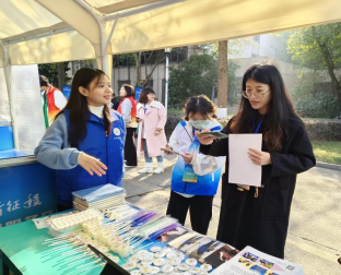 在进行交流会与颁奖仪式前,学院分团委何睿老师带领团队成员于9:00到达湖南理工学院演播厅前进行展位布展,为莅临本次交流会与颁奖仪式的领导、嘉宾详细介绍了手可摘星辰——中南地区孤独症儿童音乐戏剧疗愈新模式发起者项目详情。