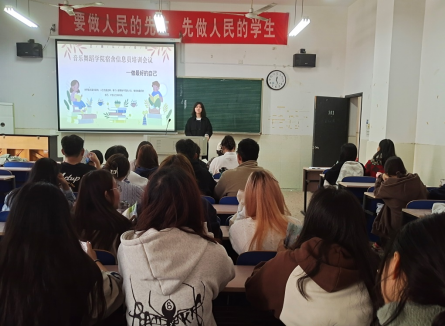 11月7日,院学生会心育部举行《做最好的自己》心理信息员培训会议,学工办主任杨淇雅主持会议、学生会心育部部长邱玺同学主讲。