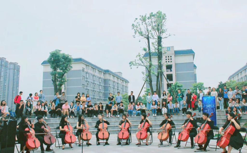 弦乐团成立于2016年,主要包含小提琴、大提琴等多种弦乐器,为热爱弦乐的人才,提供互相学习的平台,弦乐团每学期招纳新成员,经常参加一些社会活动,每学期有汇报演出,吸引了越来越多的热爱弦乐的各学院学生。