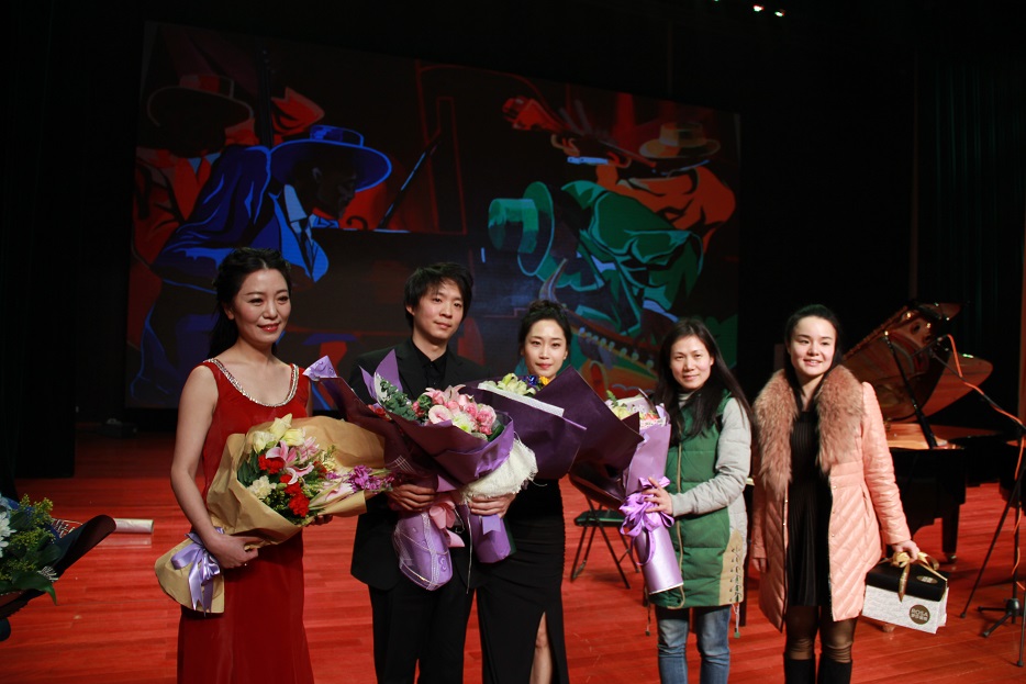 本次音乐会还特邀了崔思蕖教授手下的优秀学生杨金金和冯天明,分别为我们带来了《玛依拉变奏曲》和《我爱你,中华》两个声乐曲目。