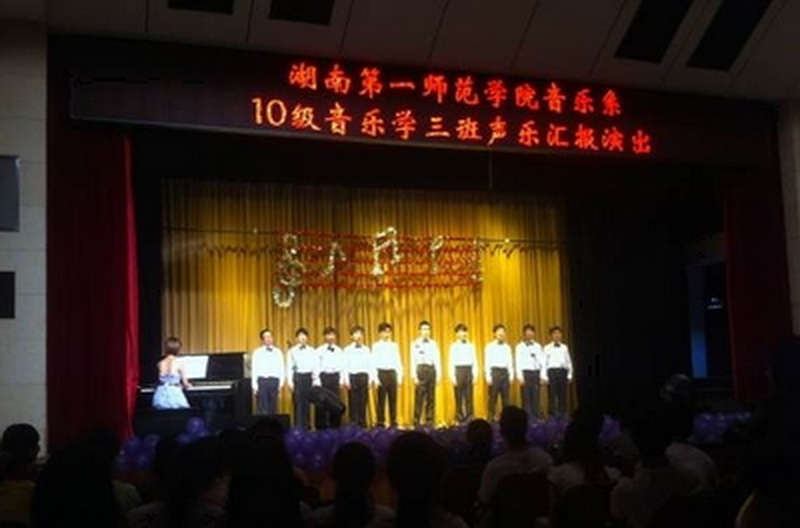 2013年5月19日,我系2010级音乐学三班声乐专场汇报演出在科技楼演播厅举行。系党总支谭顺来书记、廖小芒副主任等20多位老师到场观看。
