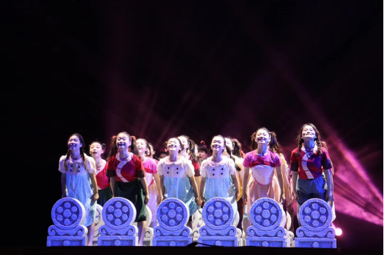 最后,所有演员的谢幕,他们齐聚舞台,在舞台上的他们是最光彩夺目的。与其说累,不如说是对自己汗水的提炼,他们属于舞台,他们属于湖南一师这个大家庭。