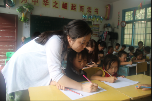 在司城村小学,黄葶老师亲自给小朋友上音乐课、舞蹈课,通过师范教学指导大学生们如何给零基础的农村小朋友们上艺术课。她和学生一起走访留守儿童家庭和当地村民,调查了解当地农村小学教育教学情况,一起走访当地民族民间艺人和“非遗”文化传承人。