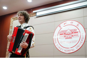 12月15日下午,由湖南第一师范学院音乐舞蹈学院和湖南省音协手风琴专业委员会主办的湖南省高校手风琴专业研讨会与专场音乐会在城南书院多功能报告厅成功举行。下午2点,音乐舞蹈学院副院长廖小芒教授致欢迎词,活动拉开序幕。活动分为三个部分,第一部分是大师课观摩,由来自俄罗斯的青年手风琴演奏家Denis Davydov进行授课展示。第二部分是高校手风琴专业研讨会,来自湖南师大、中南大学、湖南女子学院、湖南艺术职业学院的教师与我校教师一起进行了手风琴专业发展方面的深入交流。第三部分是手风琴专场音乐会。上半场开场曲《可爱的蓝精灵》由长沙县盼盼小学手风琴乐团的小学生们表演,小演员们活泼生动的表演赢得了现场的热烈掌声,接着,毕业于俄罗斯国立特里亚蒂音乐学院的青年手风琴演奏家Denis Davydov带来了《前奏曲》《探戈的回忆》《自由探戈》《假面舞会》等个人经典曲目。下半场由长沙市芙蓉区朝阳小学手风琴乐团带来手风琴合奏曲《威廉·退尔》,小学生们身着白衣边弹奏边起舞,引发了观众们的阵阵掌声。接着Denis Davydov用他红色的电子手风琴演奏了《查尔达什》《喀秋莎》《小苹果》等脍炙人口的乐曲,掀起了一阵又一阵的高潮。最后,音乐会在各大高校手风琴学子的大合奏《卡门》中结束。本次研讨会和音乐会的成功举办推进了我校师生和各大高校的专业交流,开拓了学生们的音乐视野,丰富了学生们的校园文化生活,取得了较好的口碑与效果。