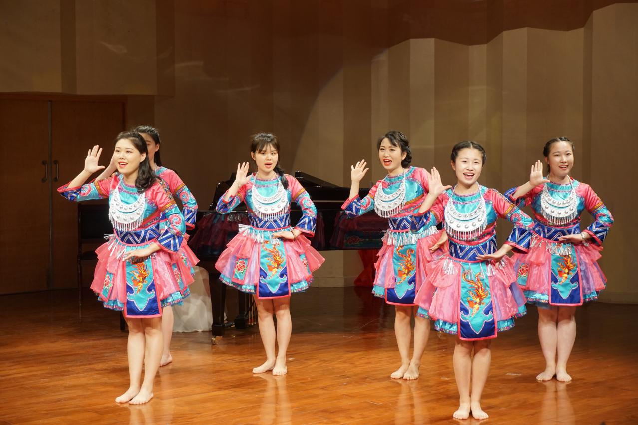 其中,独唱部分显示了刘佳蓉老师注重表演,以情带声的教学特点,表演细腻而不失华丽的声音,比如独唱的曲目《报答》,《云雀飞过阿马力》等。小组唱则更加突出了刘佳蓉老师甜美民歌的教学特点,比如小组唱《荷花谣》、《洪湖岸边是我家》《打起手鼓唱起歌》等。最后一首合唱《在水一方》是他们音乐会的主题,表现了“有位“佳蓉””,在水一方”,无论在学校还是出学校,佳蓉始终注视着她的学生们。