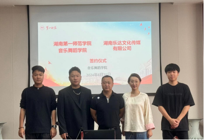 6月25日下午,学院与湖南乐达文化传媒有限公司举行了合作签约仪式,我院副院长刘炜出席会议。此次合作是基于探寻产学研融合的崭新路径,携手培育出更多卓越的音乐舞蹈人才的一次重要尝试。