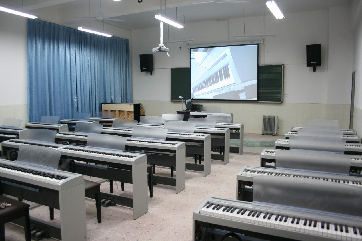本室建立于2011年,隶属于艺术教育大学生创新训练中心,共4间,位于音乐楼301、302、401、402,使用面积348平方米,实验仪器设备台套数164,资产总额79万元,包括124台电钢琴及多媒体教学系统。主要承担音乐学、舞蹈学专业的基础钢琴、钢琴演奏、键盘和声、儿童歌曲弹唱等课程的实验教学任务,年均承担57600实验人时数。
