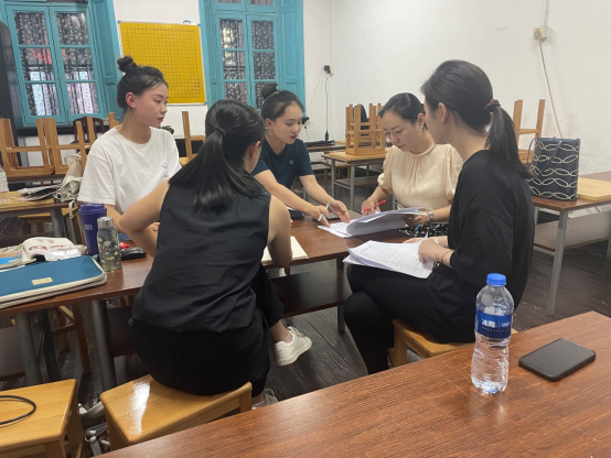 课后,教师团队与实习生一同在办公室开展了评课活动。听课老师一起开展了热烈的讨论。她们真诚地提出两位小老师在本次教学活动中的优点、不足和建议,两位实习老师也虚心、认真的进行了课堂反思。