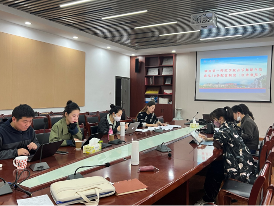 为深化本科教育教学改革,全面提高人才培养质量,2023年11月15日下午,我院举行了“意见30条配套制度”专题研讨会。该会议由副院长郭宇主持,教务办主任曹宙以及音乐教育系主任雷惠玲、副主任李小雷,...