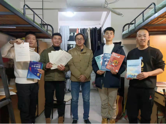 2021年12月21日2021年12月15日晚上8点40,我院党政办主任杨乾良与辅导员曾亚斌一起到我院的“军人之家”13栋333寝室进行了一场朋友般的“学风建设进寝室”。杨老师从同学们的军旅生活聊起,谈到现代军事高科技发展,...